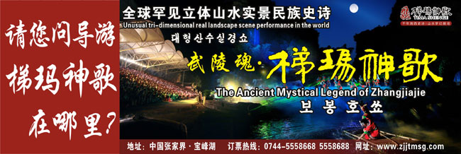 《武陵魂•梯瑪神歌》是一場(chǎng)記述土家族起源、演變、戰(zhàn)爭(zhēng)、生產(chǎn)生活等內(nèi)容的大型立體山水實(shí)景演出,揉合了音樂、舞蹈、文學(xué)等多種藝術(shù)形式,如幻如夢(mèng)的舞美燈光,搖曳生姿的原生態(tài)歌舞……濃縮了土家族數(shù)千年的發(fā)展歷史,400多名演員以自然淳樸的表演充分的展示了土家的民族文化特征,給游客帶來了耳目一新的感受。一場(chǎng)視聽的饕餮盛宴,一曲驚天地、泣鬼神的曠世古歌,給人山水文化光影視聽的享受。【出品:張家界梯瑪神歌文化傳播有限公司】
