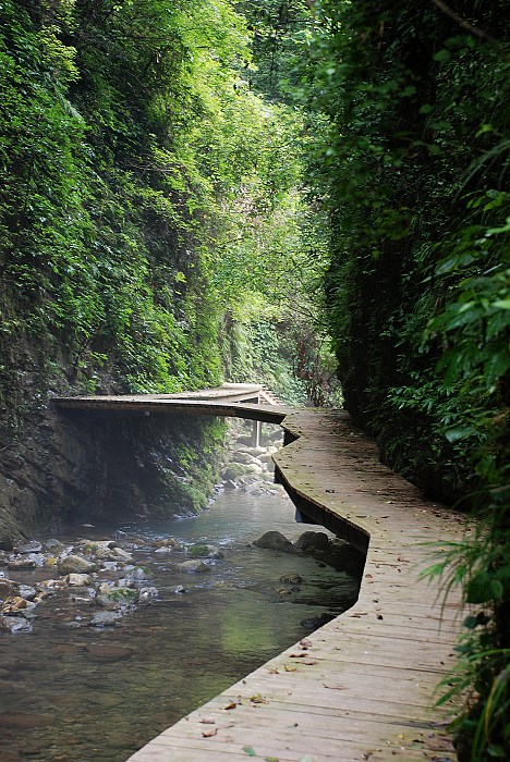 大峽谷中的飛瀑神泉比比皆是,一路游覽下來,讓人目不暇接。峽谷里植被繁茂,空氣清新,涼爽舒適,溪水上彌漫著一層薄霧,宛如來到世外桃源,讓人煩惱頓消。 張家界大峽谷峽谷間是一條清幽的小溪,沿溪邊是用木板搭建的游道, 張家界大峽谷峽谷內(nèi)不僅有傳統(tǒng)的秀美自然風光,還云集有三朝數(shù)代的歷史人文景觀,如記錄李自成與吳三桂慘烈決戰(zhàn)的“千人墳”古戰(zhàn)場,反映湘西歷史特色的土匪洞及見證解放初期湘西人民靠天勞作在絕壁間挖鑿的“南方紅旗渠”等。