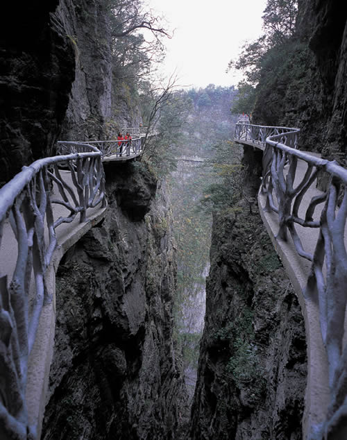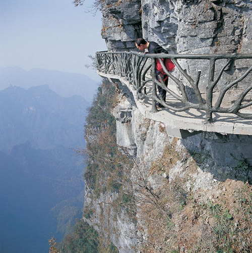據(jù)施工人員介紹,此條棧道也是他們所修棧道中施工最難,最險(xiǎn)峻的一條。如果您還覺得不夠刺激的話,在棧道的完結(jié)處的兩個(gè)懸崖之間有一條長160米的懸索吊橋,同時(shí),在海拔最高點(diǎn)還有一個(gè)挑戰(zhàn)心里極限的玻璃站臺,在這里,如果你能挺直腰板伸開雙臂,那么,您就是真正的勇士了。