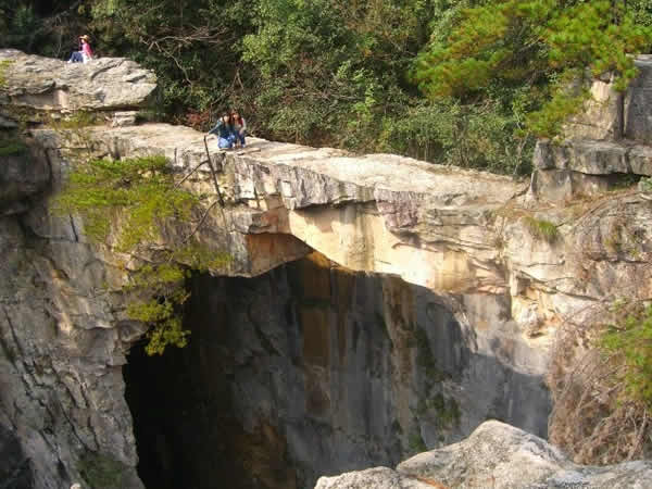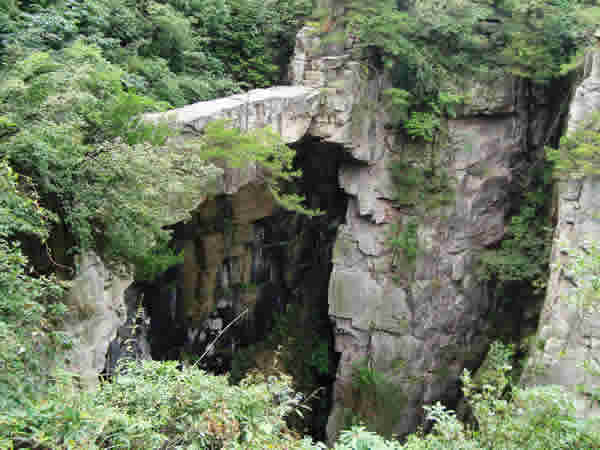 | 仙人橋,長(zhǎng)26米,寬1.6米,厚1米,高67米,飛架在兩處懸崖絕壁之間,鬼斧神工,驚險(xiǎn)而奇特。