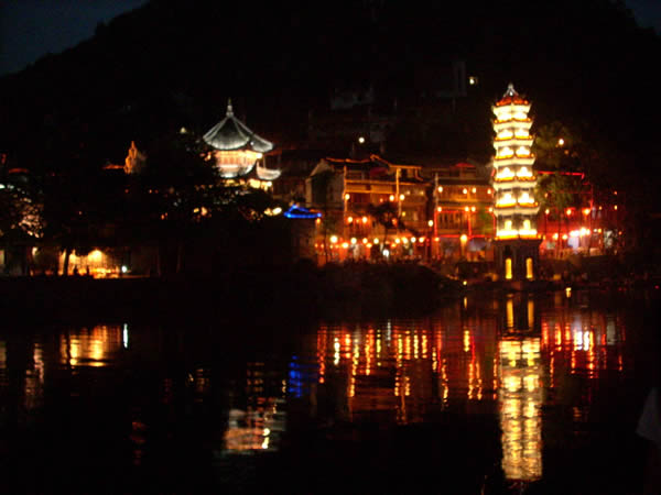 萬名塔夜景 為何要修筑這字紙爐,據(jù)說,乾隆五十年(1876年)古城擴建了筆架城以后,形似筆架,故名“筆架城”,有了筆架峰,為培植風(fēng)水,便在沙灣黃土坎江邊修筑字紙爐寶塔一座,象一支筆,與筆架城相對應(yīng),意欲使鳳凰人文蔚起。