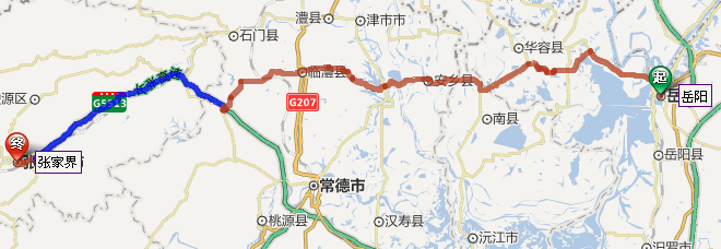 岳陽(yáng)市到張家界自駕車路線圖