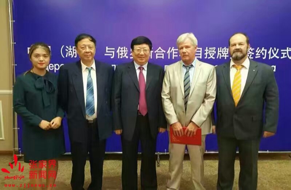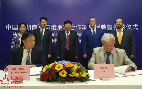 | 俄羅斯當地時間7月18日下午5時,張家界大成山水國際酒店董事長毛致平與俄羅斯莫斯科國家大馬戲團副團長扎沃龍科夫·謝爾蓋·羅馬諾維奇在烏里揚諾夫斯克市就在張家界投資8億元人民幣建設世界最大的馬戲城項目進行簽約儀式。湖南省委常委、常務副省長陳向群見證了簽約過程。