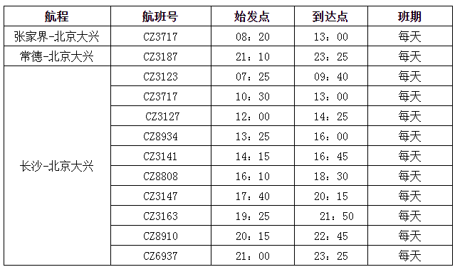 南航冬春換季后還全面優(yōu)化了各地往返北京大興的航線網(wǎng)絡(luò)。其中,張家界至北京大興航班為每天一班的朝發(fā)夕歸航班,去程CZ3717(張家界-大興)航班08:20張家界出港,回程CZ3164(大興-張家界)航班17:50北京大興起飛,時(shí)刻非常方便出行,張家界始發(fā)至大興單程僅450元起(不含稅)。常德每天往返北京大興1班;長(zhǎng)沙每天往返大興10班(2班為寬體機(jī)),均提供“精品航線”服務(wù)。此外,北京大興往返廣州、深圳、上海、長(zhǎng)沙、貴陽(yáng)、珠海、?凇⑷齺、哈爾濱、大連、杭州、重慶、西安、烏魯木齊等全國(guó)主要城市均為早中晚全天候航班布局,方便旅客航空出行和中轉(zhuǎn)銜接。